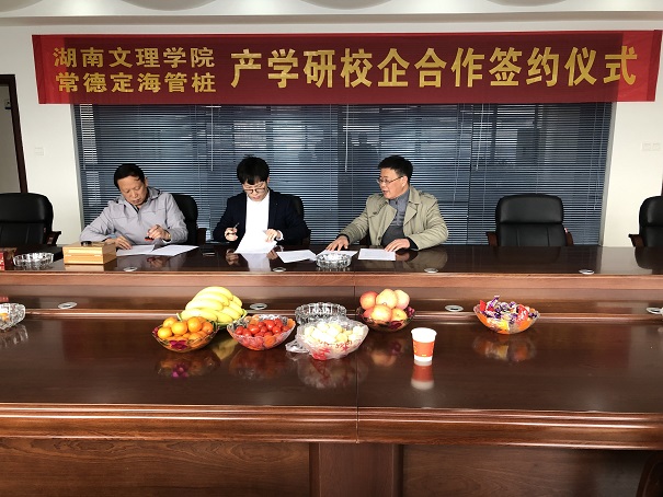 2020年3月,常德定海管樁有限公司與湖南文理學(xué)院簽訂產(chǎn)學(xué)研合作協(xié)議。總經(jīng)理陳吉果與學(xué)院領(lǐng)導(dǎo)現(xiàn)場簽約并授牌。